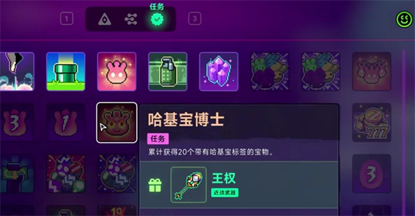 累計(jì)獲得20個(gè)帶有哈基寶標(biāo)簽的寶物,完成后獲得近戰(zhàn)武器王權(quán)。