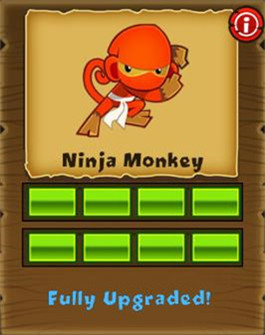 忍者猴,超贊,剛開(kāi)始可以挺過(guò)好多關(guān)!攻速較快,初期即可攻擊迷彩氣球。(順帶一提:忍者猴的原型是《特種部隊(duì)》里的黑白忍者“蛇眼”和“白幽靈”)