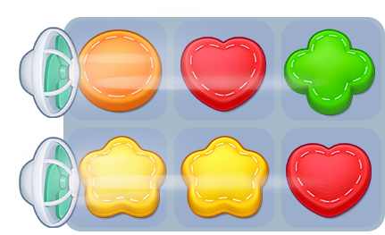紐扣被線連接在一起,它們成組出現(xiàn)。在紐扣旁匹配元素或引爆加速道具可以拆除紐扣上的線,從而解開紐扣。當(dāng)一串紐扣上的一顆被解開時(shí),整串紐扣都會被消除。仔細(xì)觀察每顆紐扣屬于哪一組,這會幫助你更好地解開它們。