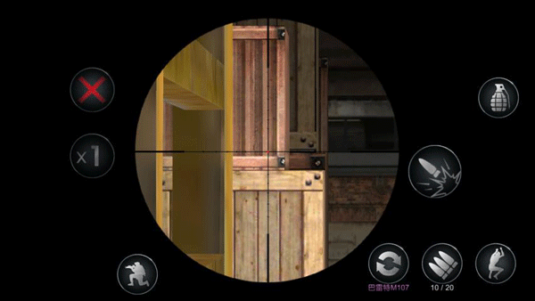玩家在使用狙擊槍時(shí)大致操作位置相同,在點(diǎn)擊射擊按鈕后進(jìn)入開(kāi)鏡模式,開(kāi)鏡模式下右側(cè)會(huì)顯示開(kāi)鏡的倍數(shù)和退出開(kāi)鏡模式的按鈕。同時(shí)普通模式的按鈕全部保存,玩家可以隨心所欲的操作。