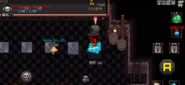 在城鎮(zhèn)中有一個藍色的橢圓,通過這個橢圓的魔法門我們可以選擇想要進入的戰(zhàn)斗區(qū)域。接著就可以開始激動人心的戰(zhàn)斗了。來到一個場景之后,每一個回合都有一定數(shù)量的怪物出現(xiàn)。我們需要控制角色不斷的在場景中擊敗怪物和破壞場景中的箱子來獲得獎勵,有時候我們會撿到裝備,有時候我們會撿到金幣。通過這樣不斷的戰(zhàn)斗獲得獎勵讓自己的等級技能提升,獲得更好的裝備等等。