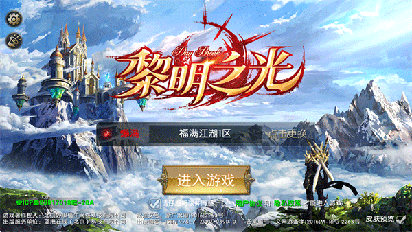 1、打開(kāi)黎明之光手游,登錄賬號(hào)選擇區(qū)服后點(diǎn)擊進(jìn)入游戲;