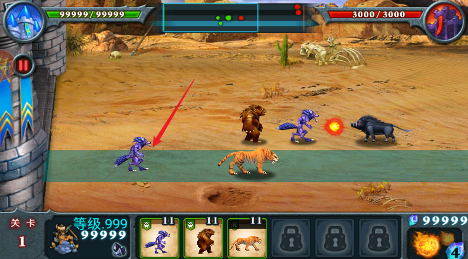 5、消耗資源后,將猛獸卡牌拖入戰(zhàn)場,即可自動對敵發(fā)起攻擊。