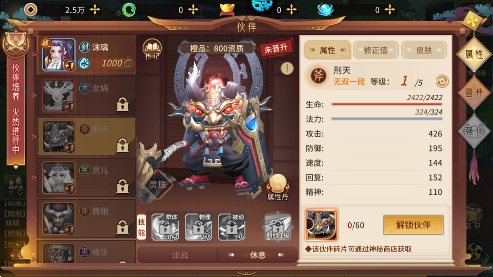被動(dòng)技能:女媧擊殺任意目標(biāo)后,會(huì)引發(fā)山崩,對(duì)敵方單個(gè)目標(biāo)造成精神屬性307%的法術(shù)傷害