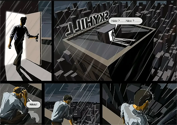 而相對應(yīng)的結(jié)局就是主角殺出重圍,打開了酒店的門,卻發(fā)現(xiàn)自己來到的“一樓”是樓頂……主角恍惚的呼喊著女兒的名字,自然無人應(yīng)答,而主角也在此時仿佛意識到了什么,企圖跳樓自殺