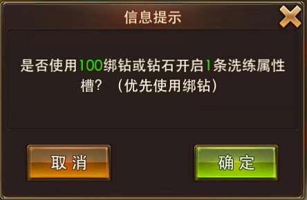 玩家可以使用100綁鉆或鉆石開啟新的洗練屬性槽,開啟時將自動生成一條洗練屬性,每件裝備最多可以擁有4條屬性槽。只要花費(fèi)100鉆即可擁有高額屬性,小編認(rèn)為性價比是很高的哦!