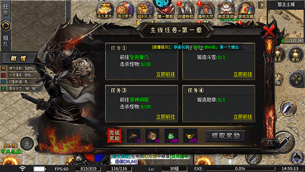 5、進(jìn)入主線任務(wù)中,開啟自動戰(zhàn)斗模式,正在一鍵自動式刷怪中;