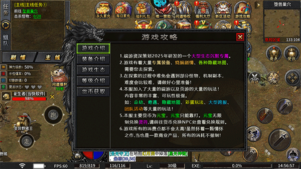 7、最后點(diǎn)擊屏幕右上角的游戲攻略可查看關(guān)于游戲的裝備、生態(tài)、等級以及貨幣獲取的眾多詳細(xì)介紹。
