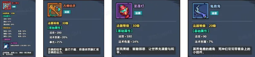 燃燈佛:優(yōu)先考慮惑心禪杖>焰晶盤(pán)/古佛枯手>祥紋甲>鬼鹿角