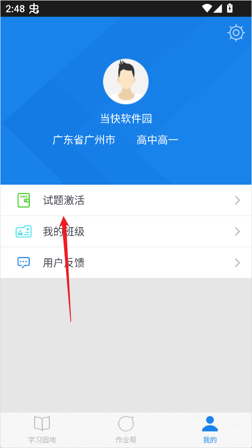 2、在個(gè)人中心頁(yè)面,選擇【試題激活】選項(xiàng);