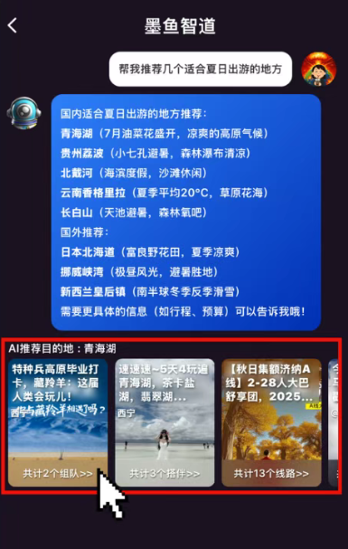 3、AI助手將快速回答你的問(wèn)題,并且自動(dòng)為你推薦相匹配的路線。