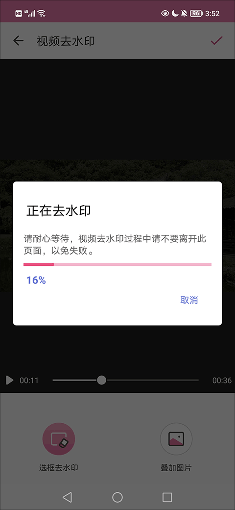 4、系統(tǒng)將自動開始去水印處理,請稍作等待,處理速度取決于視頻長度與設(shè)備性能;